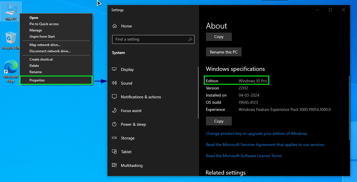 Click on This PC on your desktop (or search for it on Start Menu), right click, then select Properties.